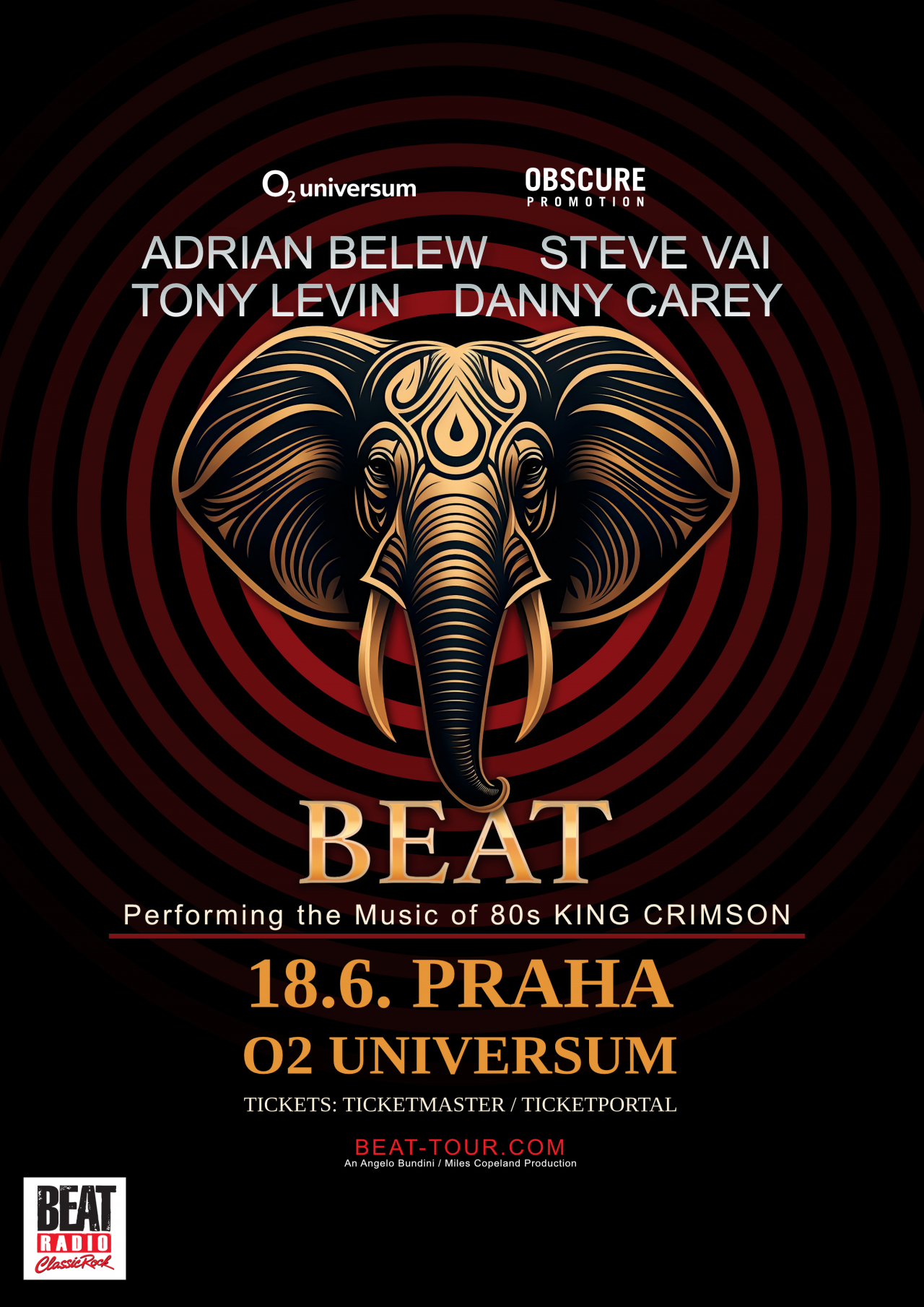 Projekt BEAT vznikl jako pocta jedné z nejvlivnějších kapel rockové historie a zároveň jako její živé, současné znovuzrození. Adrian Belew a Tony Levin – dva zásadní členové tehdejší sestavy King Crimson – se spojili s kytarovým fenoménem Stevem Vaiem a rytmickým mágem Dannym Careym (Tool), aby vytvořili koncertní sílu, která se opírá o precizní techniku, energii a futuristický výraz. Výsledkem je show, která zachovává charakter původních skladeb, ale zároveň je přetváří do podoby odpovídající roku 2026 – intenzivnější, zvukově mohutnější a bezprostředně strhující.