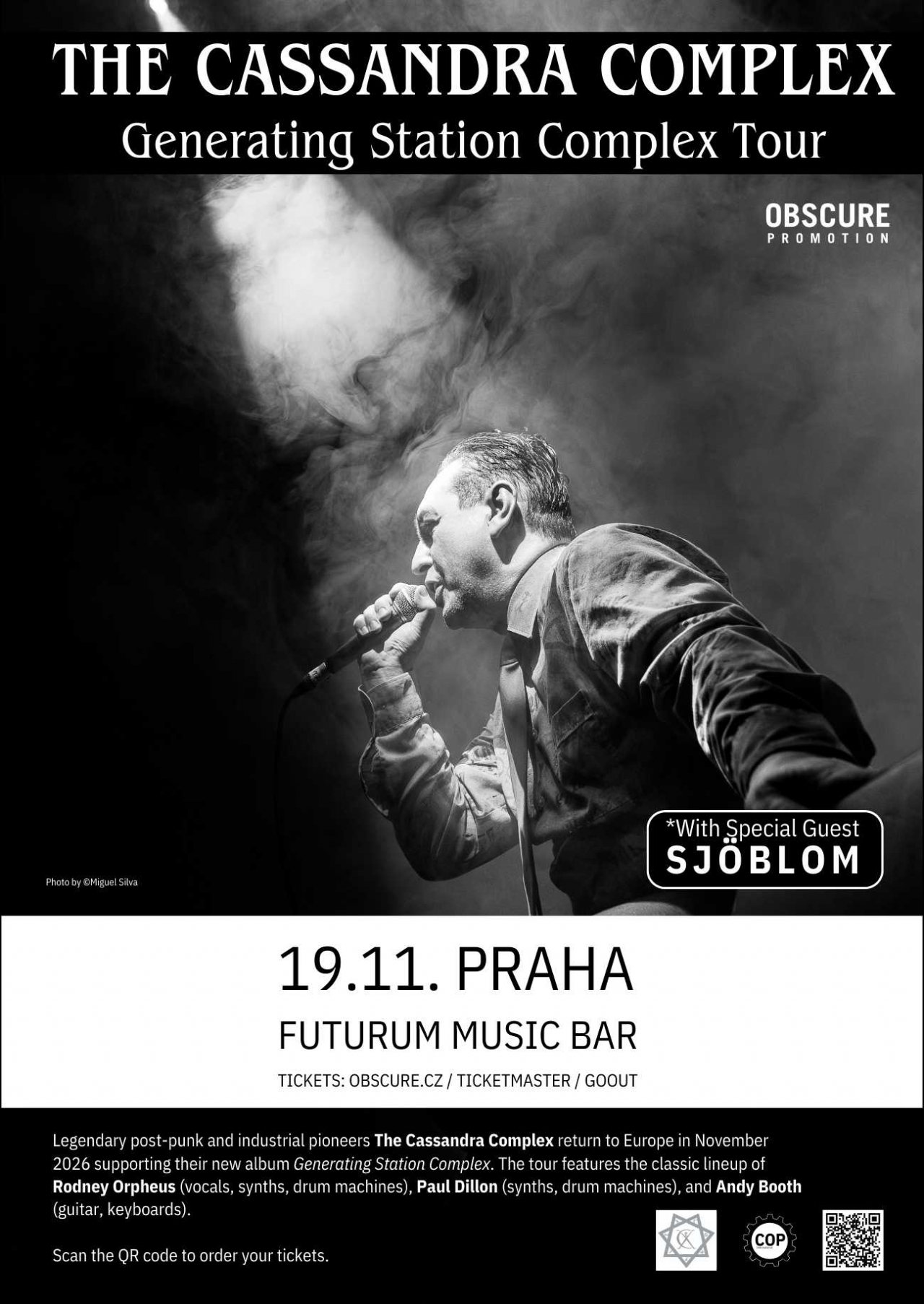 Ikony dark wave a industriálního rocku THE CASSANDRA COMPLEX se vrací do Prahy! Rodney Orpheus a jeho sestava přivezou do Futura hypnotické rytmy a post-punkovou dravost. Večer otevře švédský projekt SJÖBLOM. Temná estetika, synťáky a kytary v perfektní symbióze.