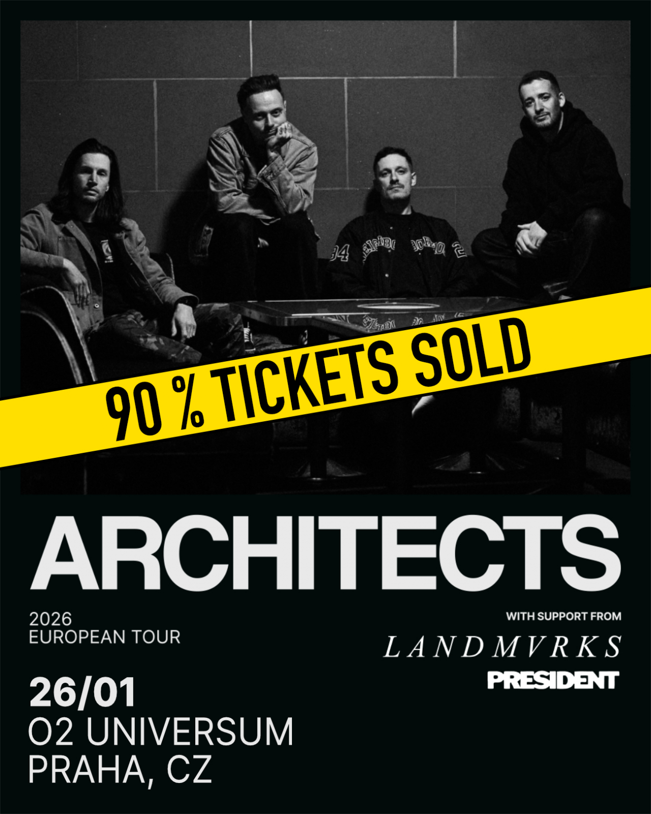 Architects se vrací do Prahy! Po vyprodaném Fóru Karlín zvyšujeme laťku a v lednu 2026 si tyto velikány metalcoru vychutnáte v pražském O2 Universu! Pro Architects se jedná o největší headline show, kterou tato britská parta v České Republice kdy odehrála, tak u toho buďte s námi! O tučný support se postarají francouzi LANDMVRKS a jedno z nejvíce diskutovaných jmen na světě, mysteriózní PRESIDENT.