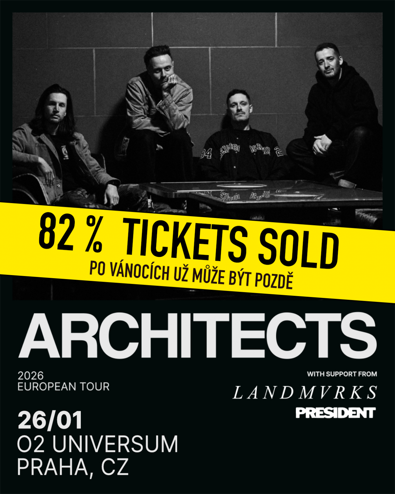 Architects se vrací do Prahy! Po vyprodaném Fóru Karlín zvyšujeme laťku a v lednu 2026 si tyto velikány metalcoru vychutnáte v pražském O2 Universu! Pro Architects se jedná o největší headline show, kterou tato britská parta v České Republice kdy odehrála, tak u toho buďte s námi! O tučný support se postarají francouzi LANDMVRKS a jedno z nejvíce diskutovaných jmen na světě, mysteriózní PRESIDENT.