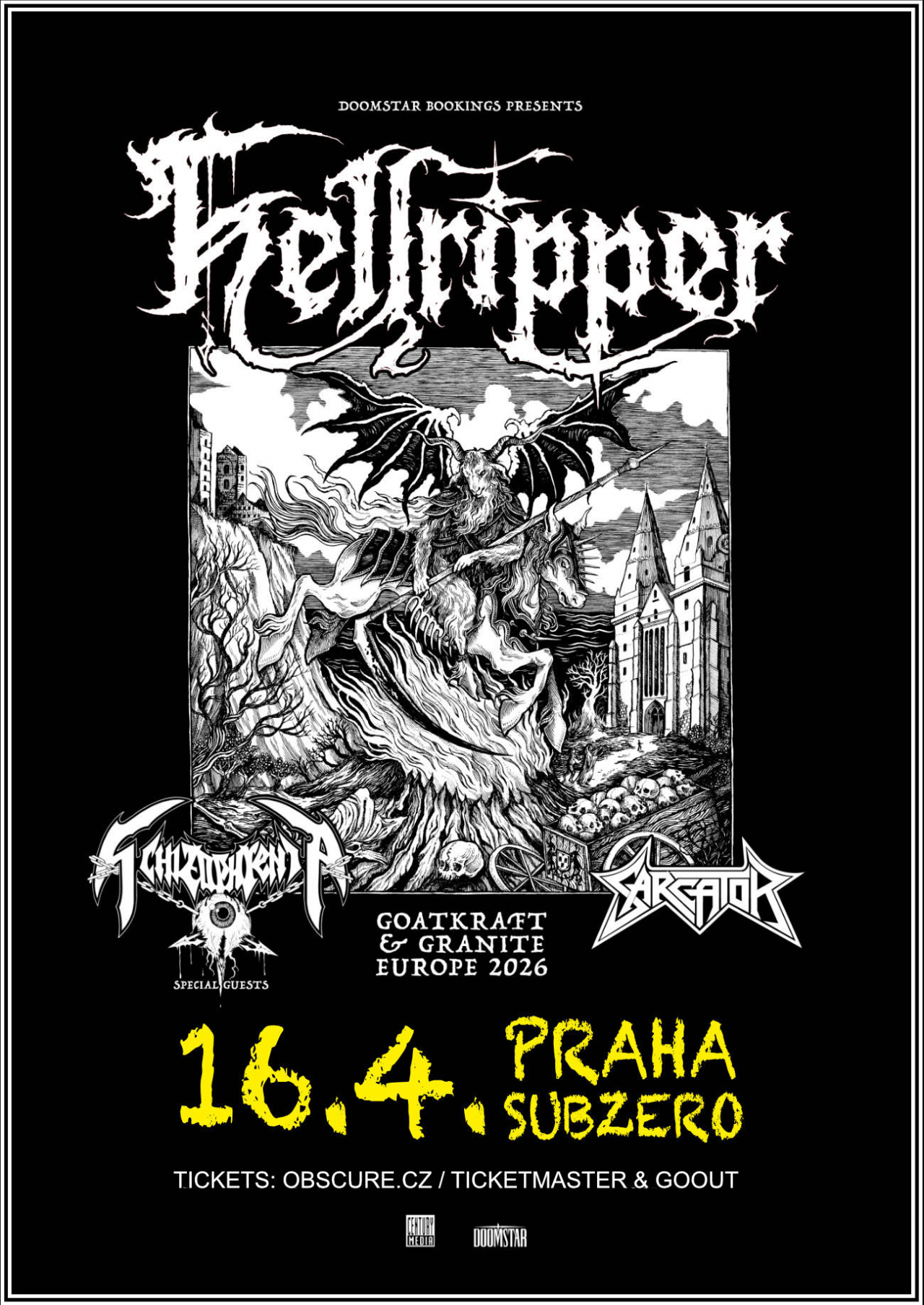 Thrash/black metalová mašina Hellripper se řítí na Prahu! Jedno z nejvýraznějších jmen současné extrémní metalové scény přiveze bleskurychlé riffy, blast beaty a syrové vokály, které zaplaví pražský klub Subzero temnou a chaotickou atmosférou. Jako speciální host vystoupí belgická senzace Schizophrenia a v roli supportu se představí švédští Sarcator.