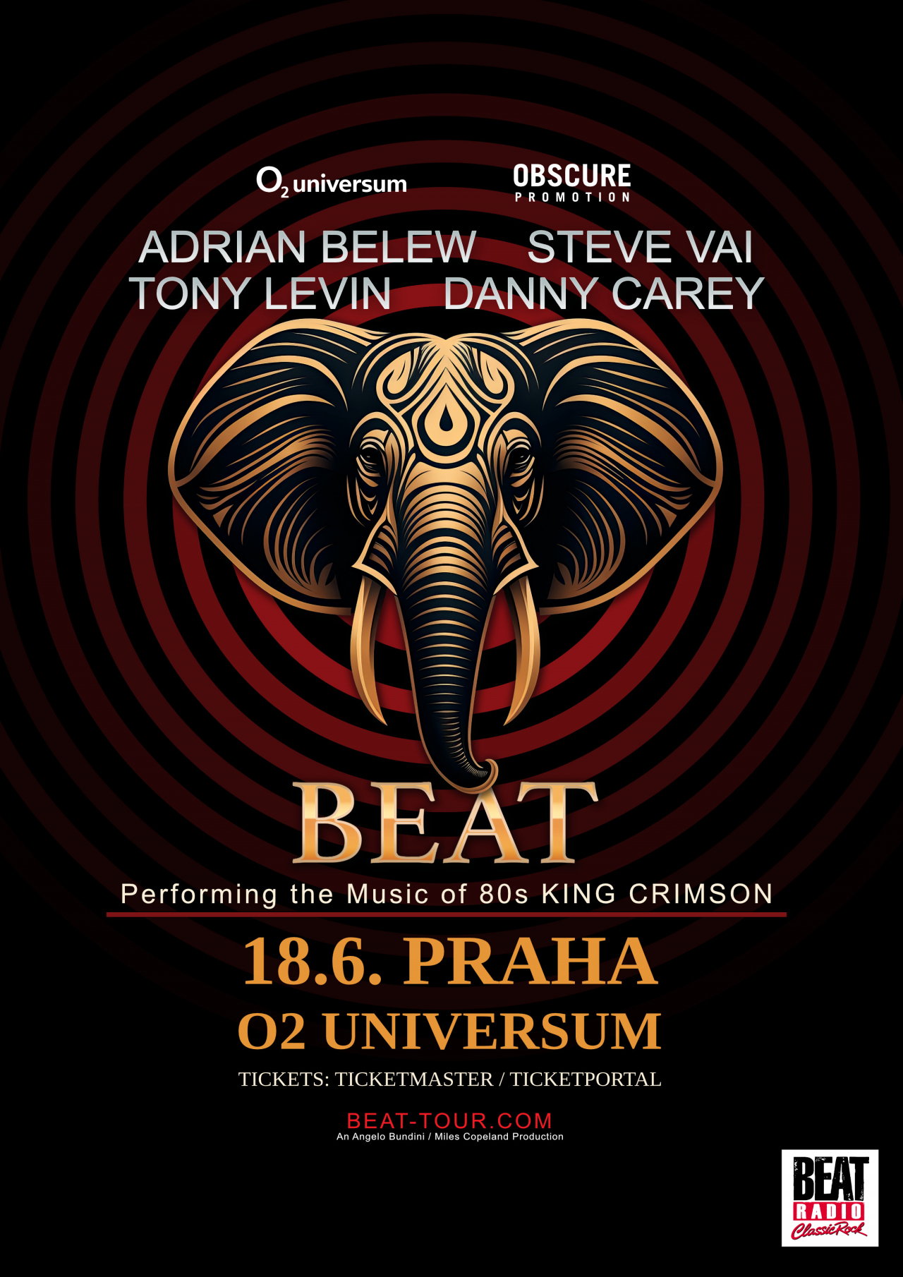 BEAT was created as both a tribute to one of the most influential rock bands in history and a living, modern-day rebirth of its legacy. Adrian Belew and Tony Levin — two essential members of King Crimson’s 80s lineup — joined forces with guitar phenomenon Steve Vai and rhythmic sorcerer Danny Carey to create a live act built on precision, raw energy, and a futuristic musical vision. The result is a show that preserves the essence of the original material while reshaping it for 2026 — more intense, sonically massive, and instantly captivating.